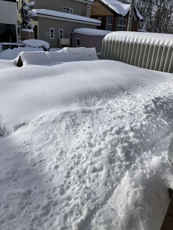 一昨日、昨日と降ってはいますが最大で5センチでした。今朝はちょっと降って雪かき出動です。