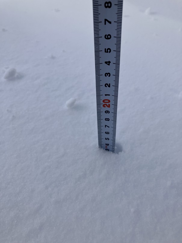 朝10時前の積雪は14センチでした。パウダースノーで今回は密度もなく軽かった。