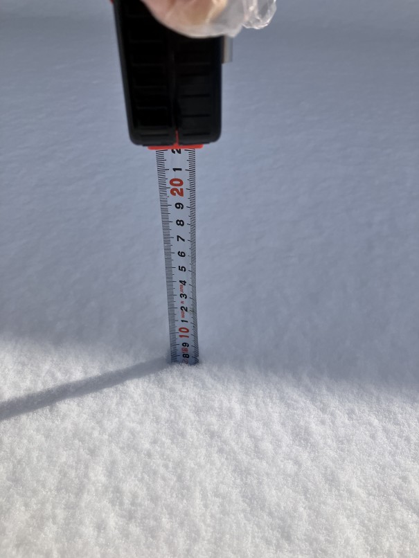 朝10時前の積雪は8センチでした。気温もマイナス6.9℃で暴風だったためかかなり圧縮された感じで片栗粉のような雪。